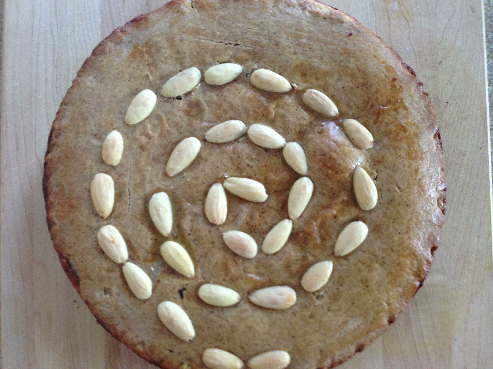 5. Lightly grease a shallow metal pie or tart pan. On either a piece of parchment or a lightly floured surface, roll 2/3 of the dough out to a circle to generously line the pie dish.